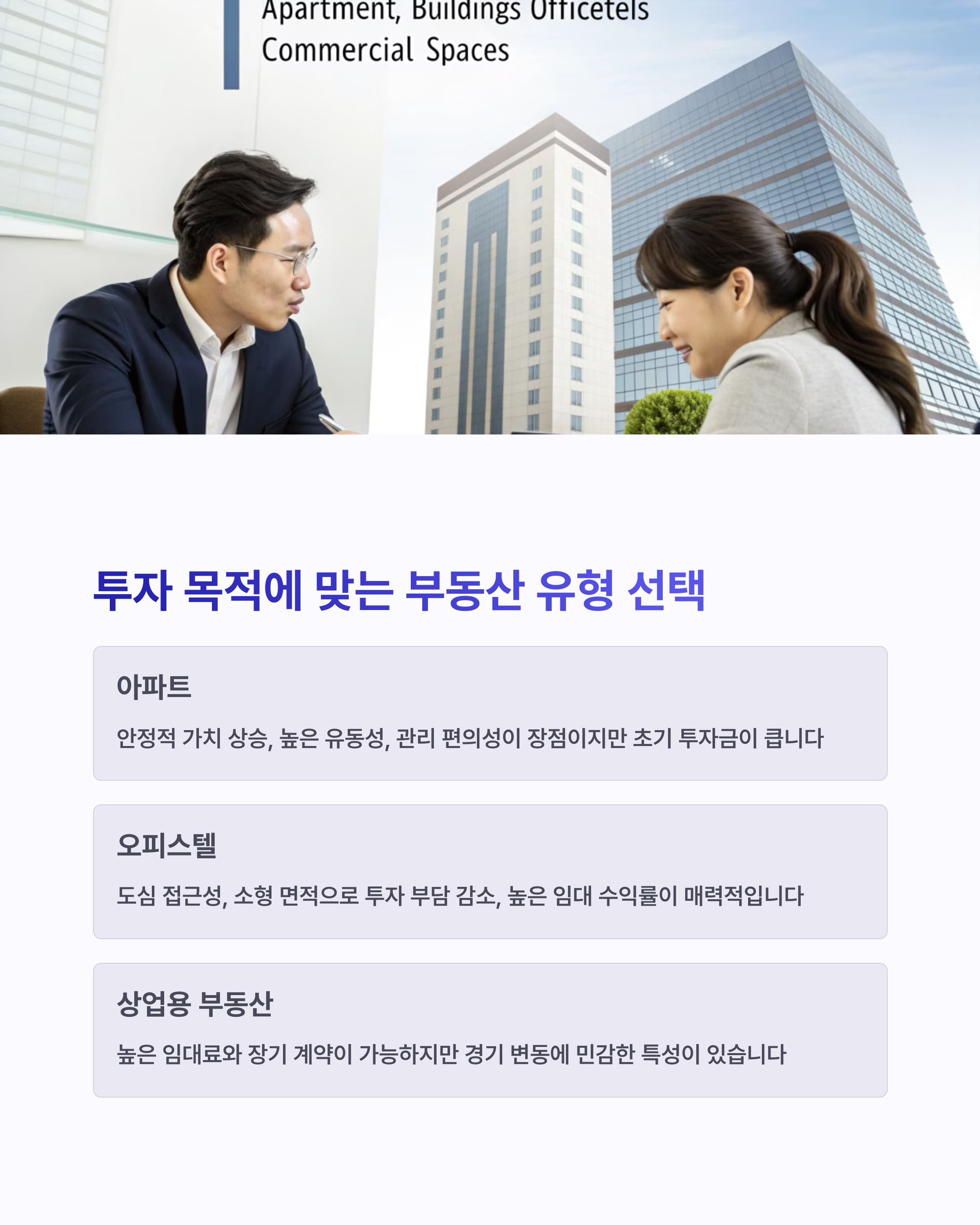 입지, 수익성, 유형, 시장 분석, 장기 전략 모두가 맞물려야 성공적인 투자로 이어질 수 있습니다.