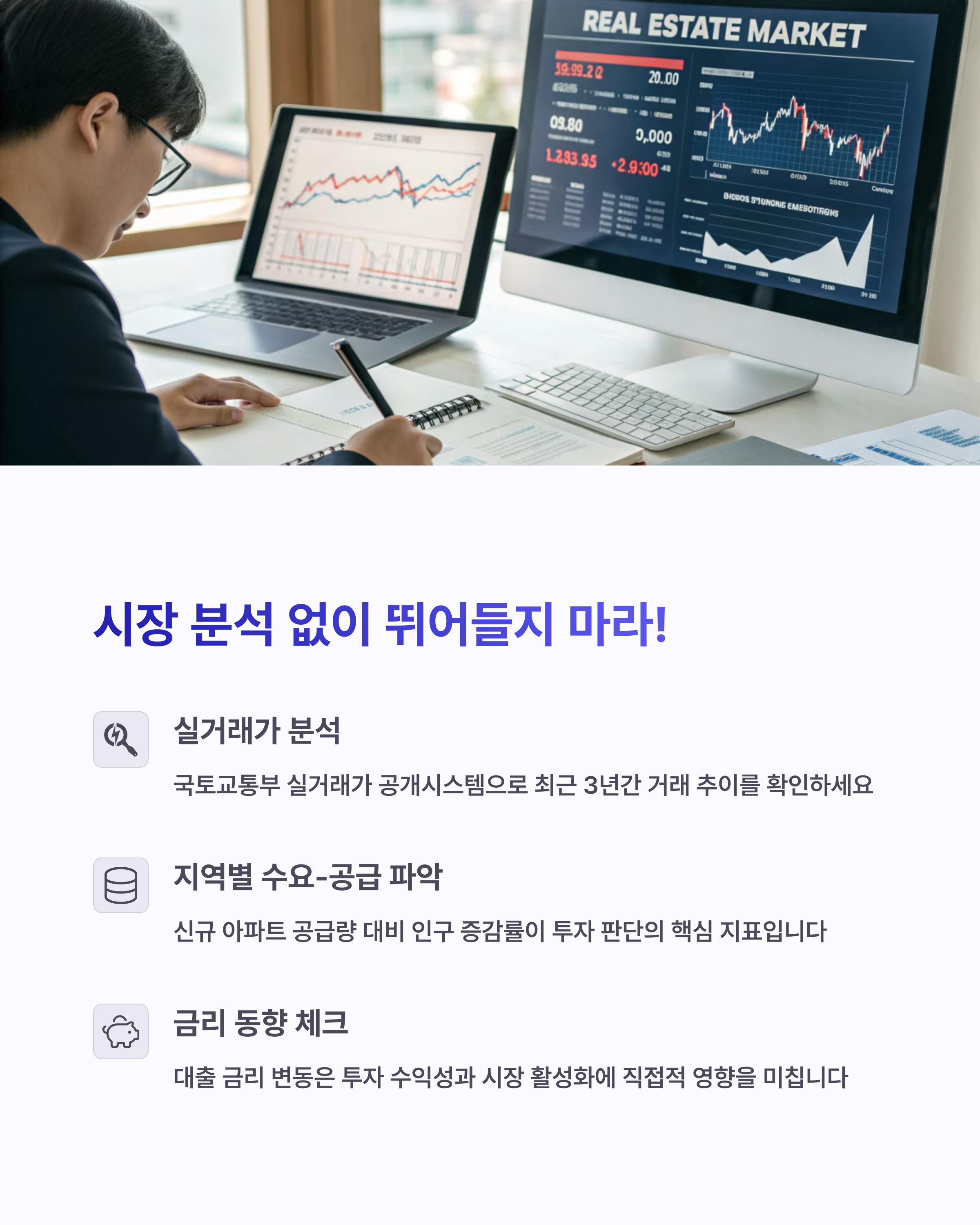 부동산 시장은 복잡하게만 느껴질 수 있지만, 몇 가지 원칙만 알고 시작해도 충분히 안정적인 투자로 이어질 수 있습니다.