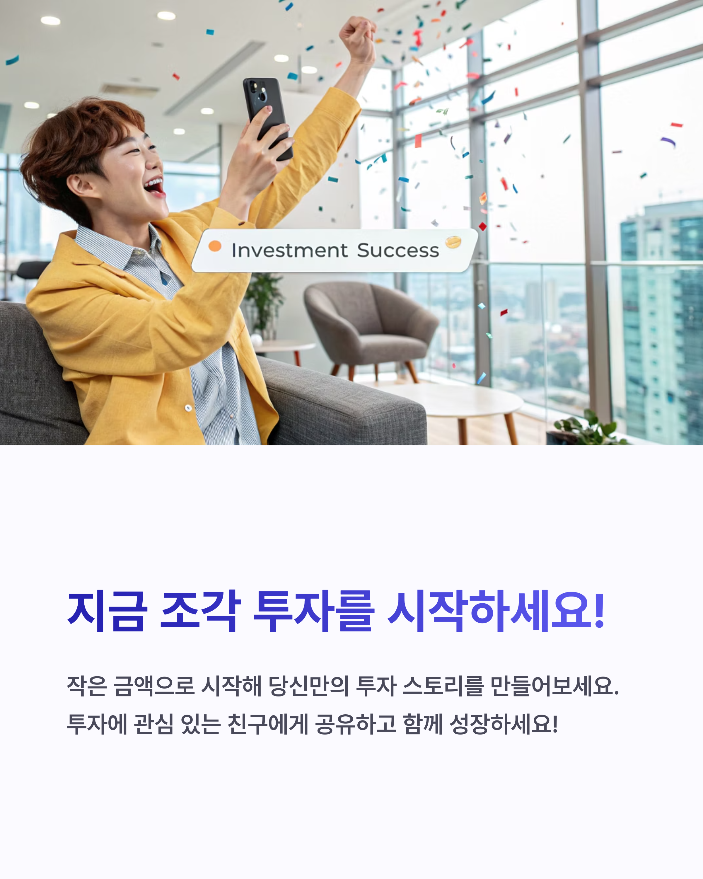 조각 투자는 더 이상 특정 계층만의 특권이 아닙니다. 단돈 1천 원으로도 누구나 고가 자산의 일부를 소유하고, 장기적 수익을 추구할 수 있는 시대가 왔습니다.