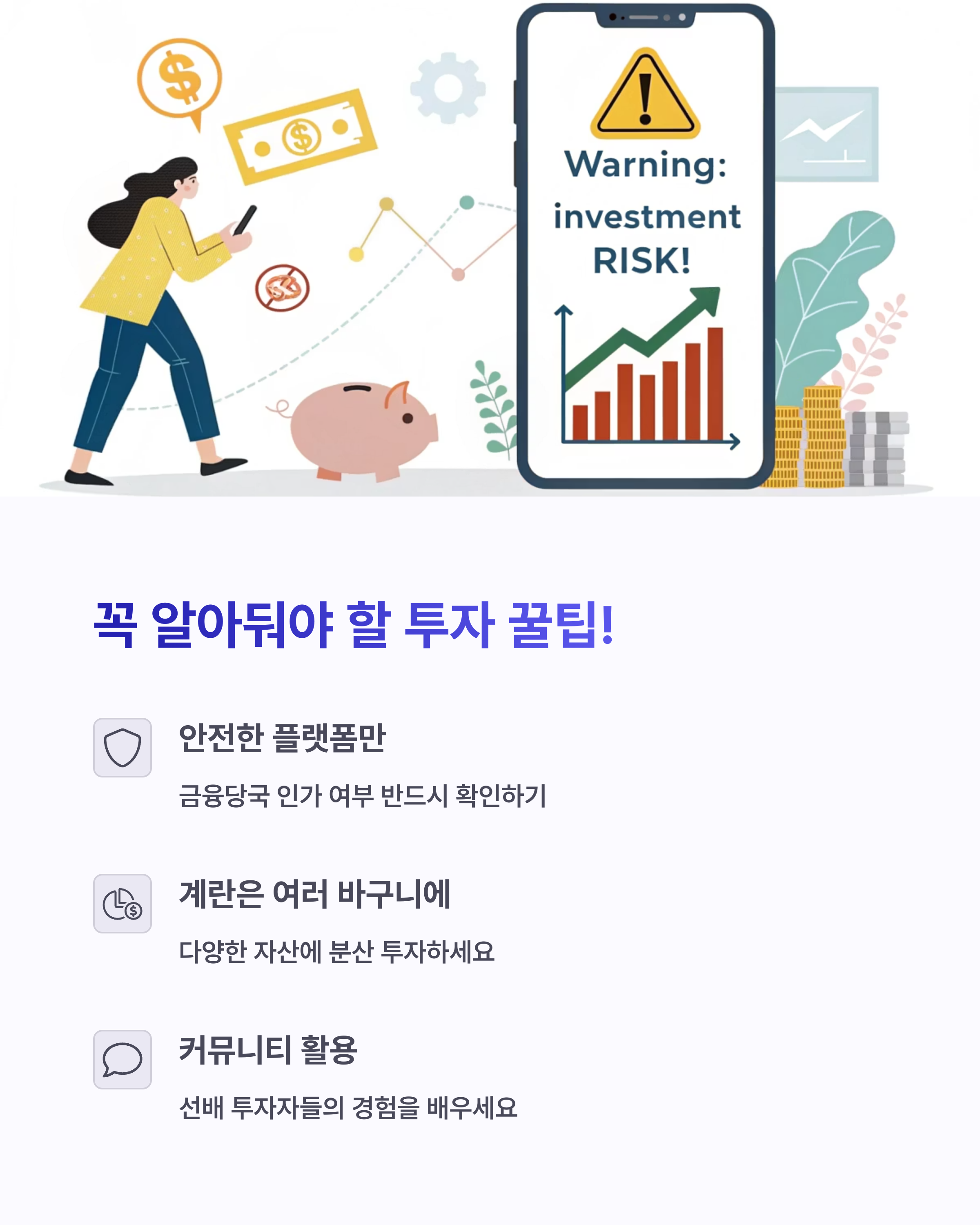 이제는 무조건 큰돈이 있어야만 투자할 수 있다는 시대는 끝났습니다. 지금 바로 관심 있는 플랫폼에 소액부터 투자해보세요!