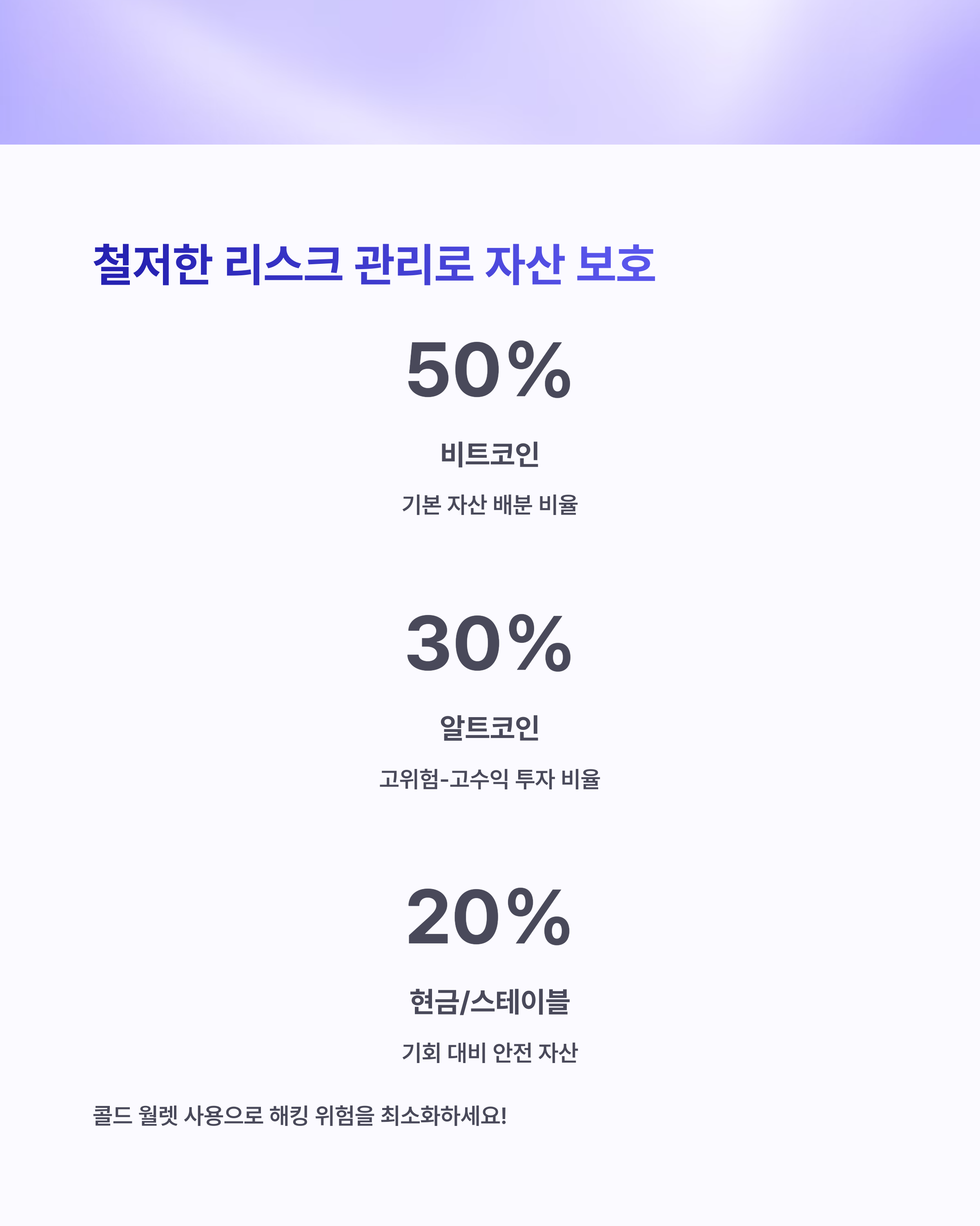 투자 금액은 반드시 감당 가능한 수준으로 설정하고, 정기적인 리밸런싱을 통해 시장 변화에 유연하게 대응해야 합니다.