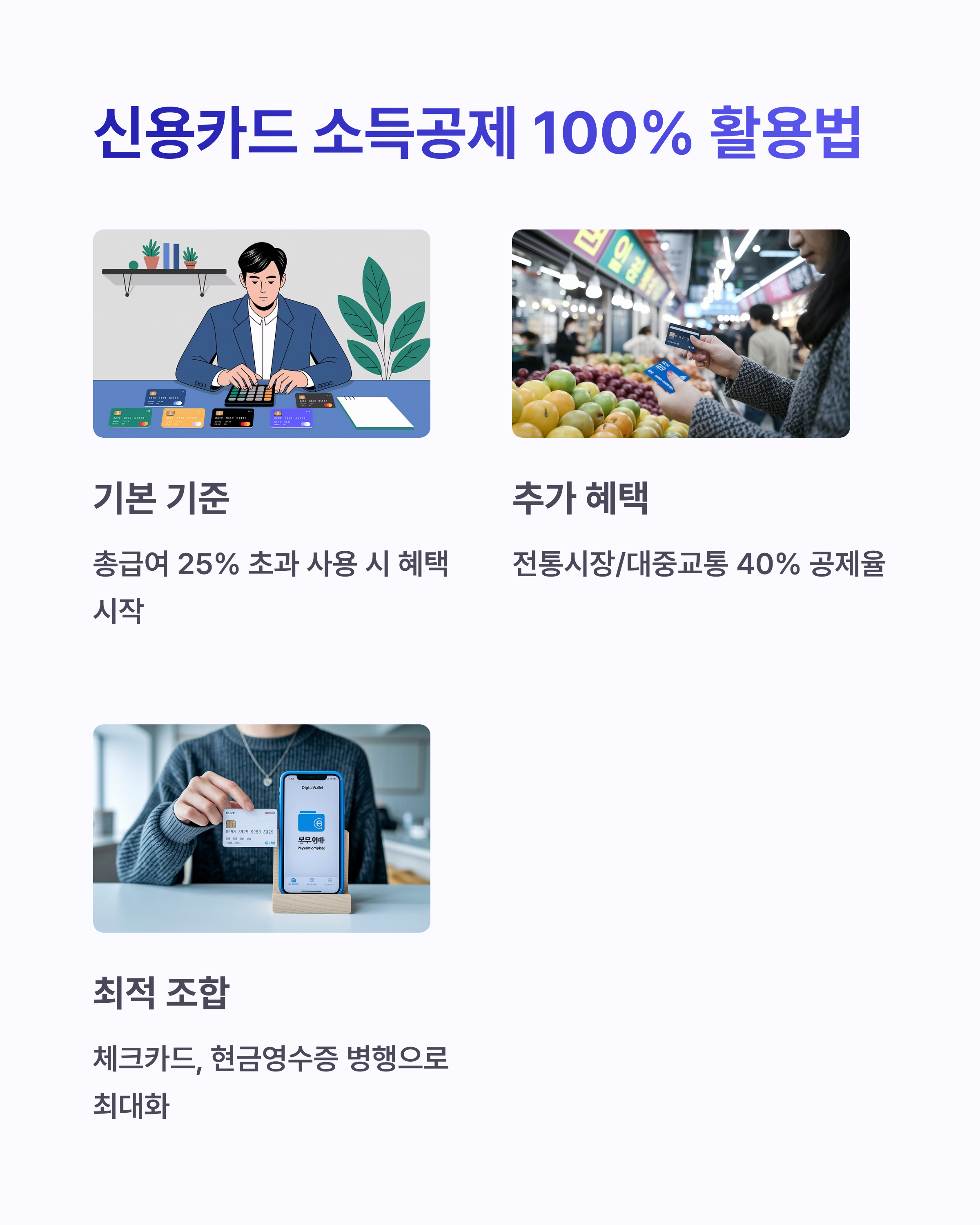 신용카드 소득공제는 직장인이 손쉽게 적용할 수 있는 대표적인 절세 수단입니다. 매달 꾸준히 소비하는 것만으로도 연말정산에서 공제 혜택을 받을 수 있다는 점에서 절세 초보자들에게도 매우 유용하죠.