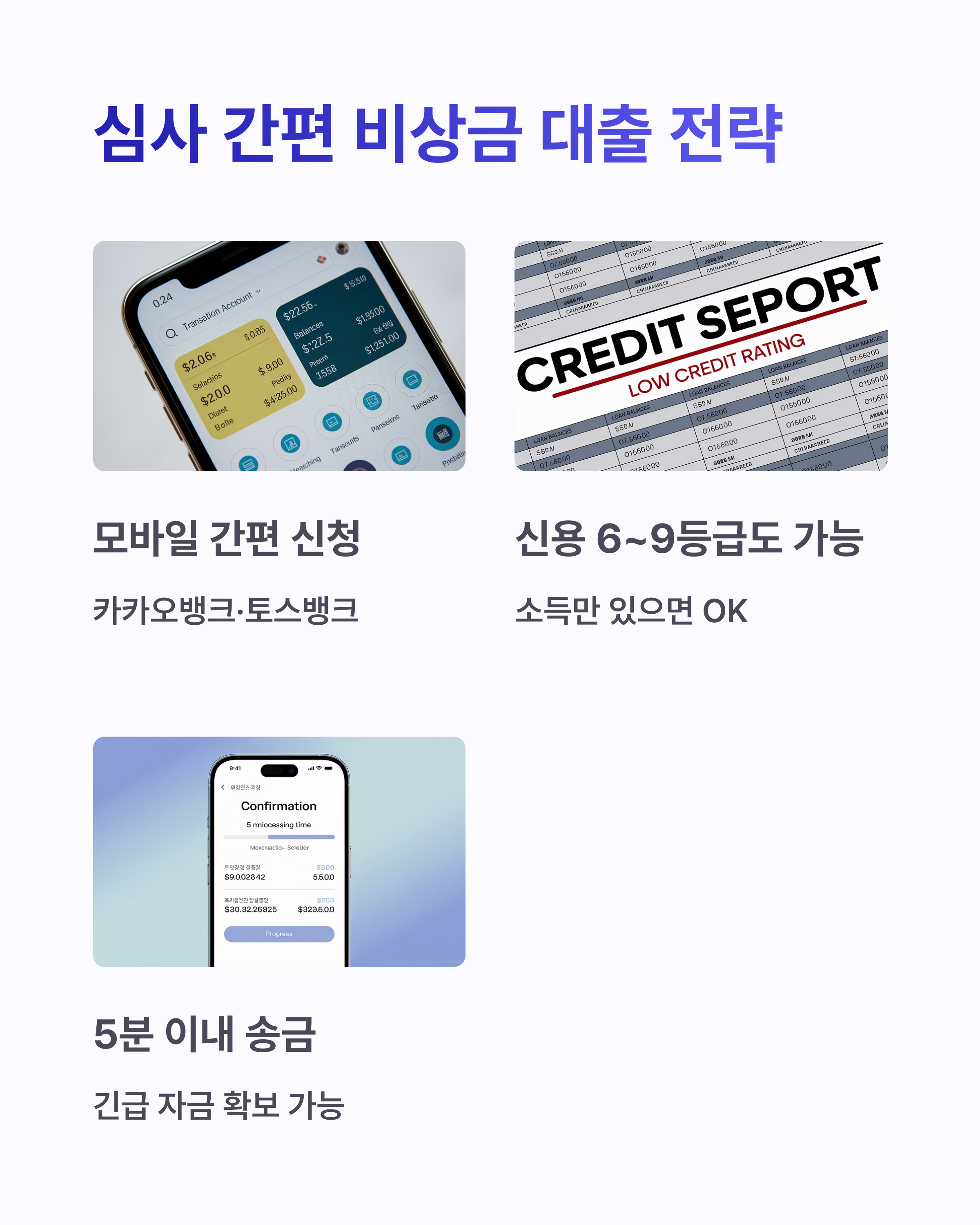 복잡한 심사 절차 없이 모바일로 신청 가능하며, 대부분 당일 승인이 이뤄져 긴급한 상황에 적합합니다.