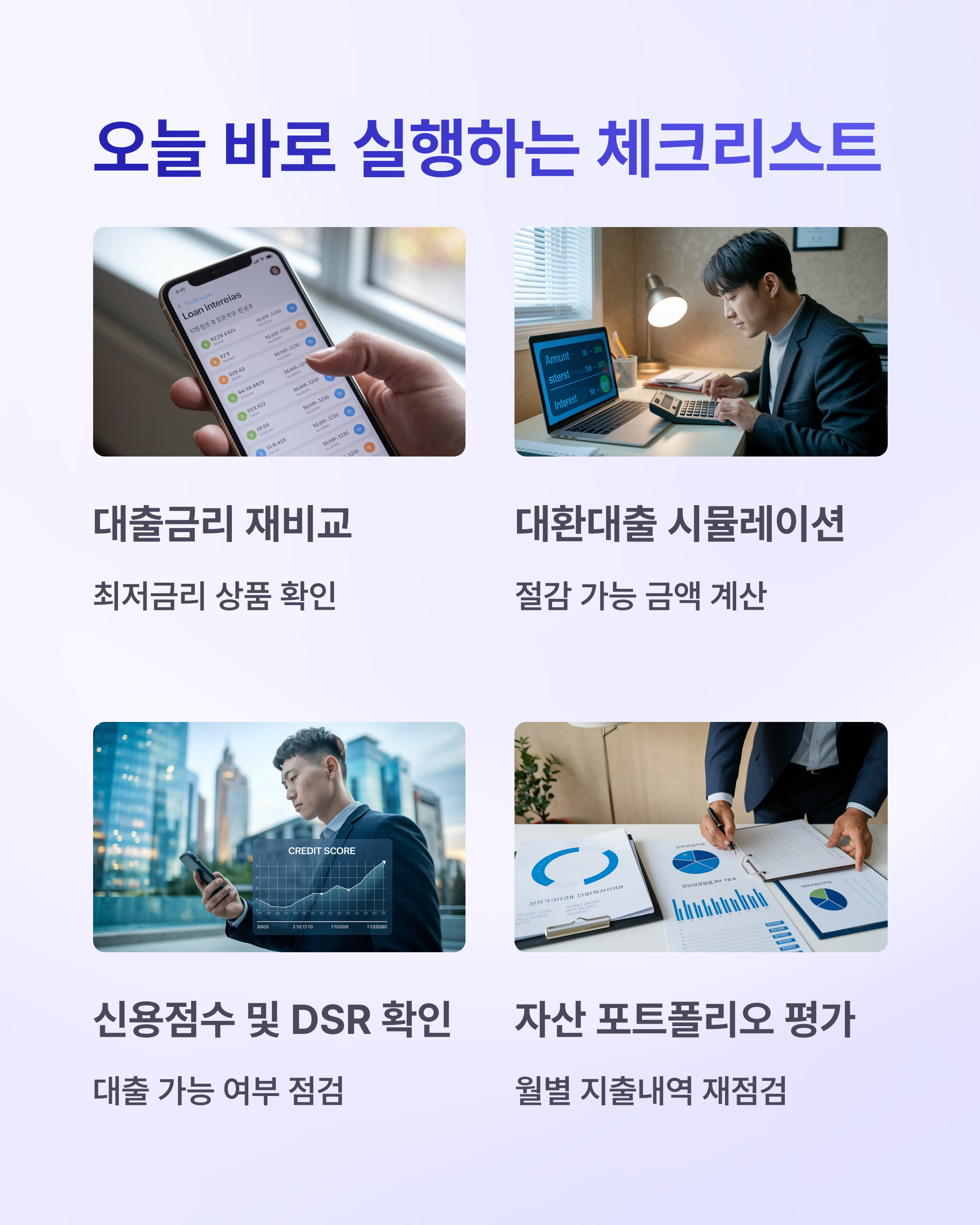 이자 부담이 줄어든 지금이 바로, 나의 대출 구조를 다시 설계할 골든타임입니다. 무엇을 하느냐에 따라 수십만 원에서 수백만 원까지의 절감 효과를 체감할 수 있습니다.