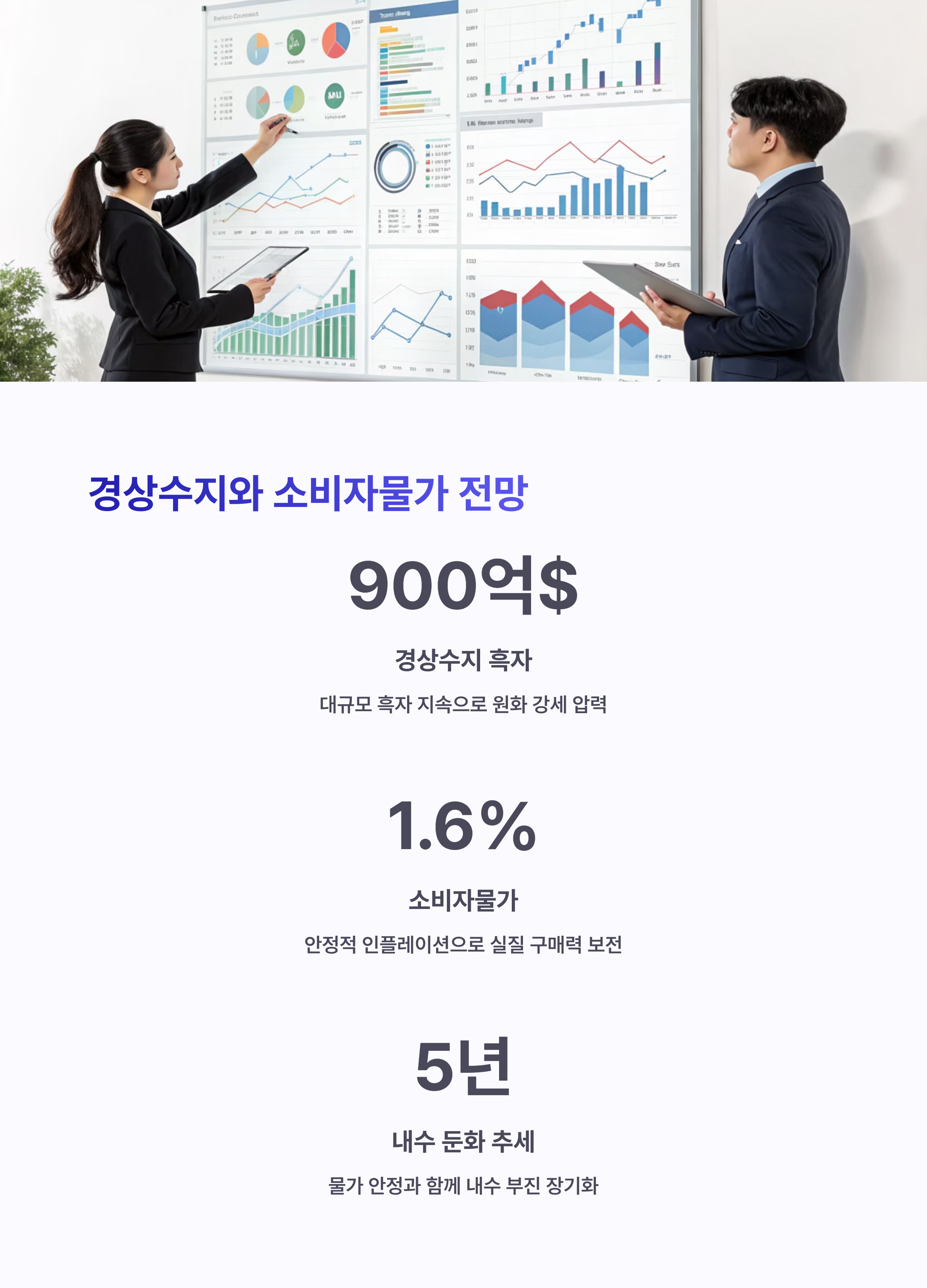 경상수지는 약 900억 달러 내외의 흑자를 유지할 것으로 보입니다.