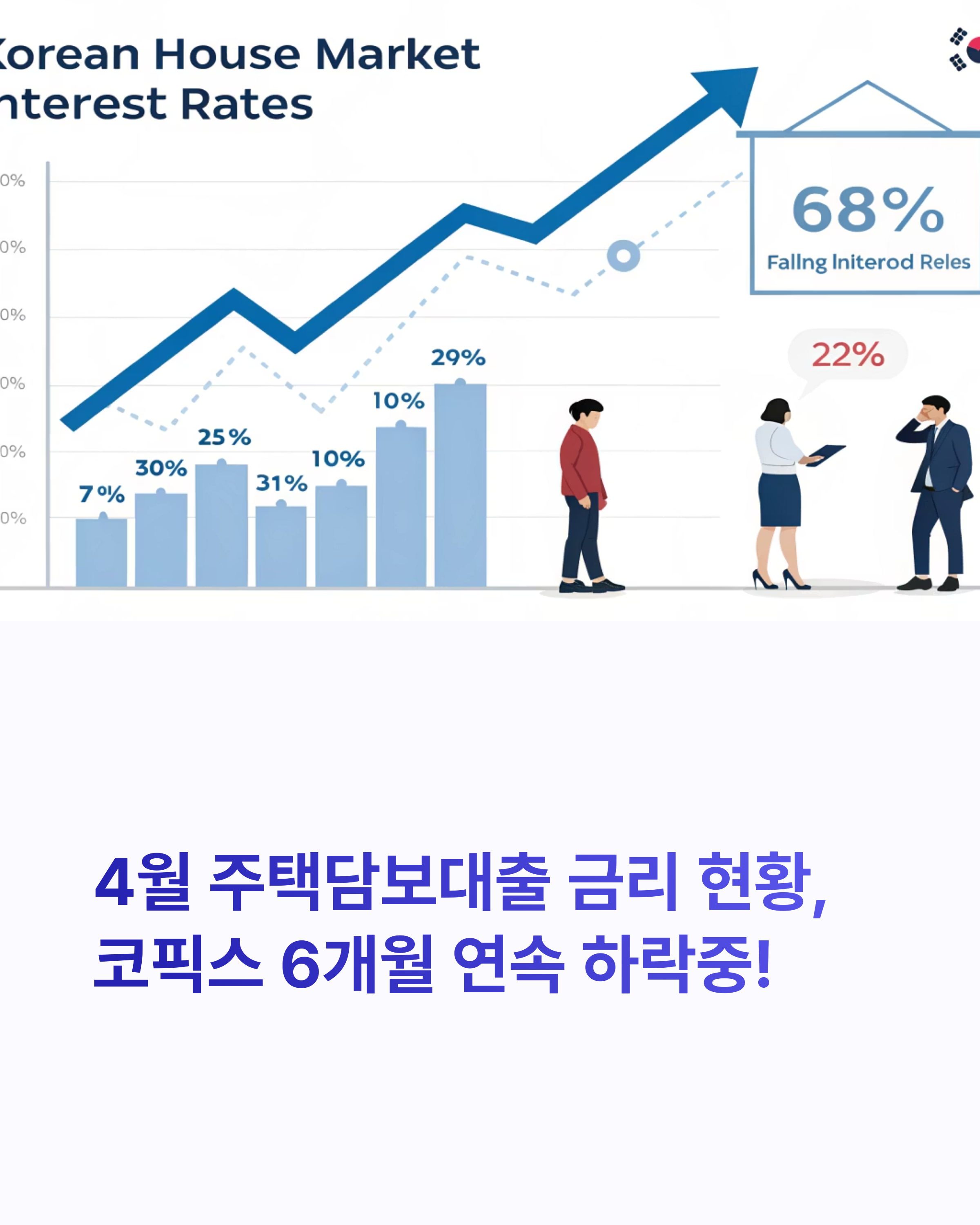 "2025년 4월, 주요 은행 주택담보대출 금리는 4%대에서 유지되고 있습니다. 하지만 일부 최저금리 상품은 3%대 후반까지 내려왔습니다."