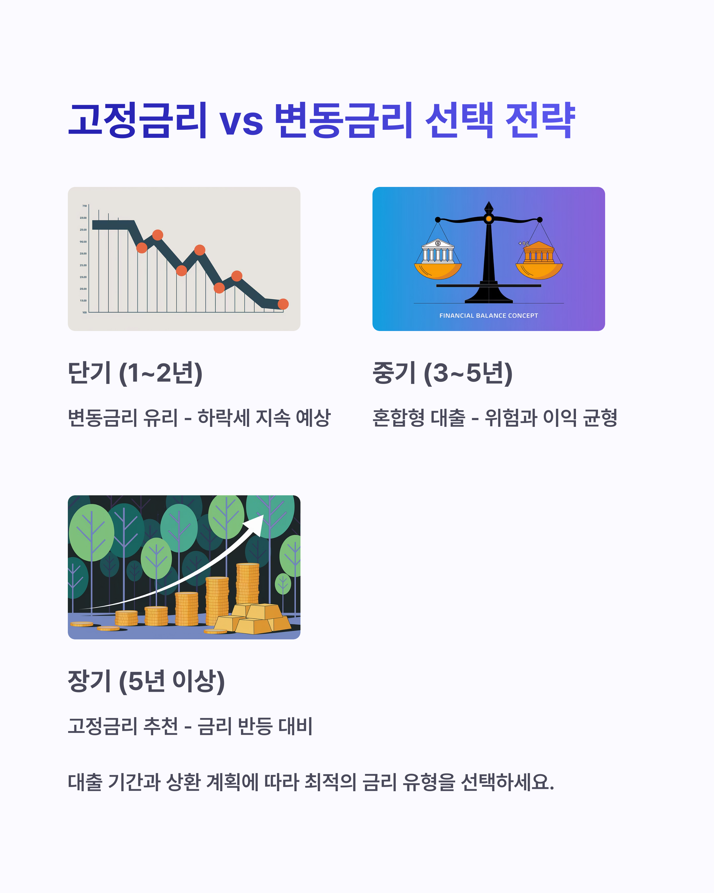 | 변동금리 | 초기 금리 낮음 | 금리 상승 시 부담 증가 |