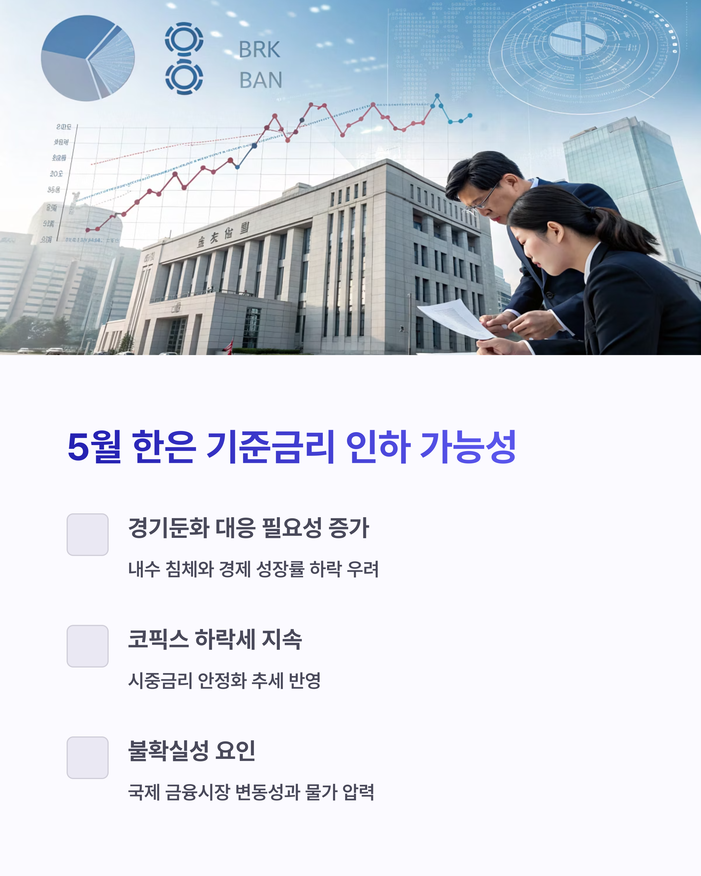 "한국은행, 5월 추가 기준금리 인하 가능성 열어둬… 시장 기대감 고조."
