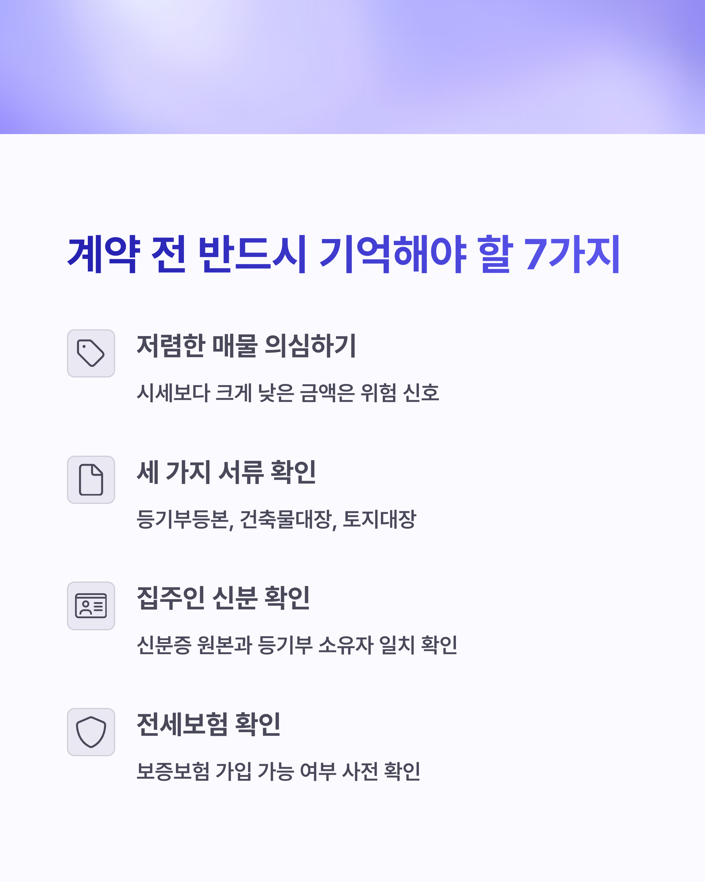 "압류, 근저당, 세금체납 여부를 반드시 확인하세요."