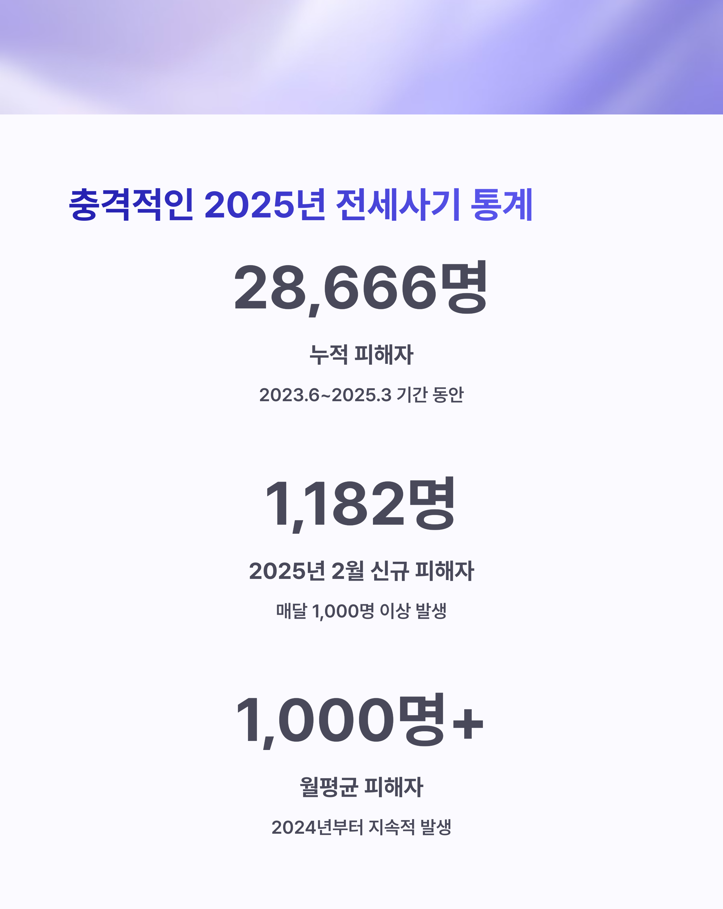 "2025년 4월 기준, 전세사기 피해자가 2만8천명을 돌파했습니다."