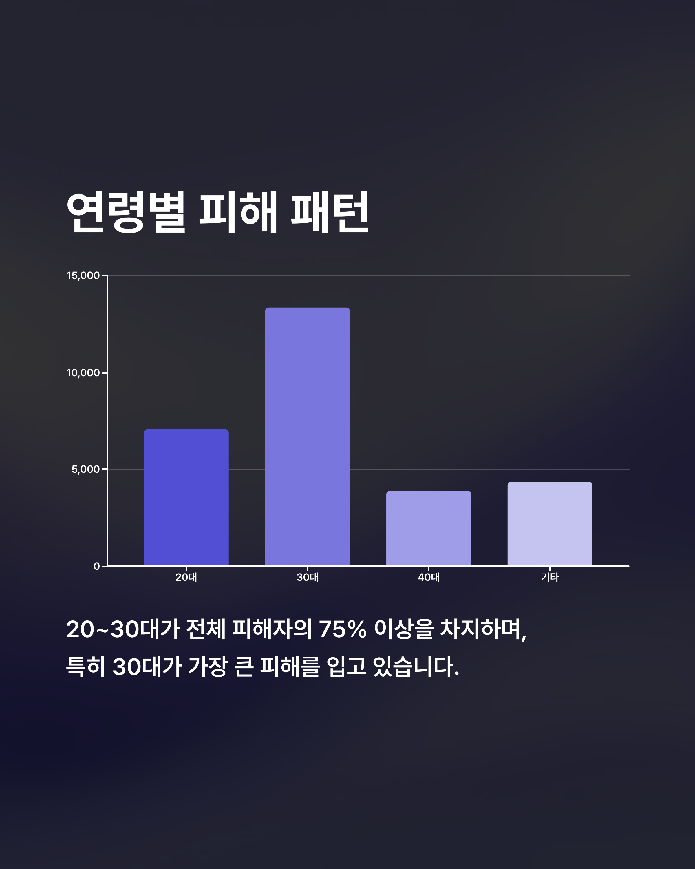 "20~30대 피해자가 전체의 75% 이상을 차지합니다."