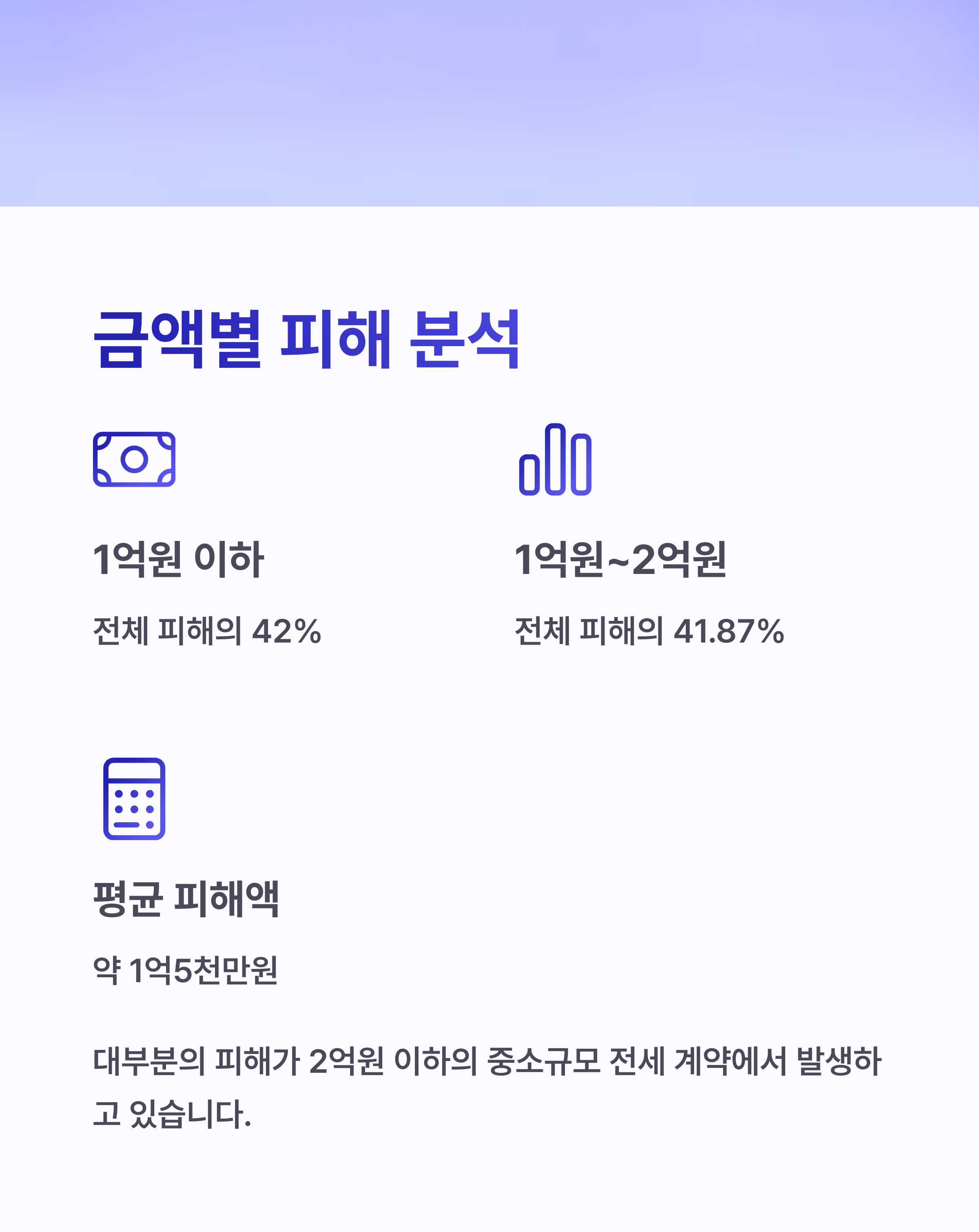 피해 금액별로는 1억 초과~2억 이하가 41.87%로 가장 많았습니다.
